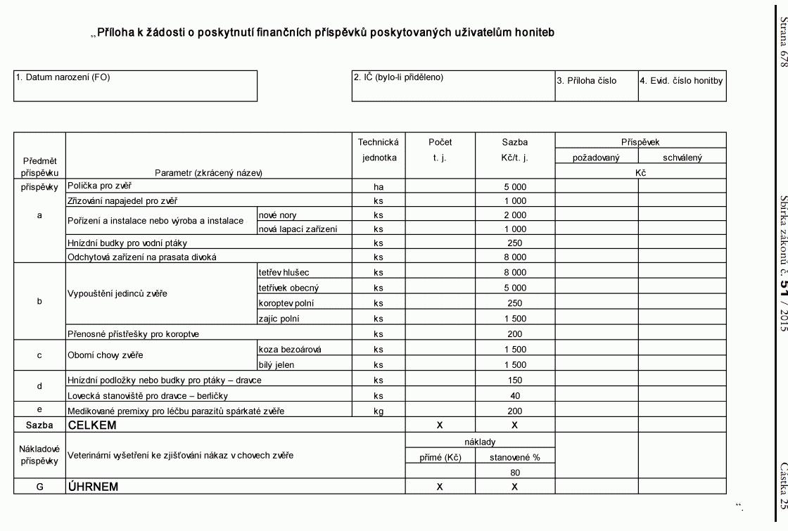 Nařízení Vlády České republiky č. 51/2015 Sb., kterým se mění nařízení vlády č. 30/2014 Sb., o stanovení závazných pravidel poskytování finančních příspěvků na hospodaření v lesích a na vybrané myslivecké činnosti, ve znění nařízení vlády č. 308/2014 Sb.