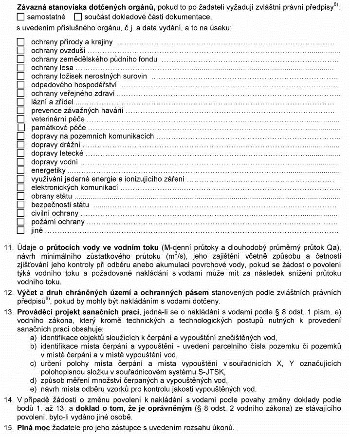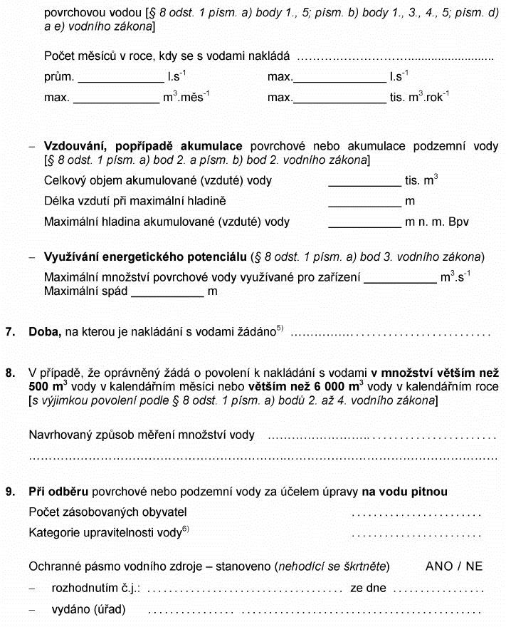 Právní předpisyŽÁDOST O POVOLENÍ K NAKLÁDÁNÍ S POVRCHOVÝMI NEBO PODZEMNÍMI VODAMI NEBO JEHO ZMĚNU