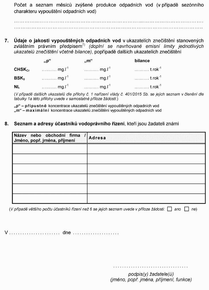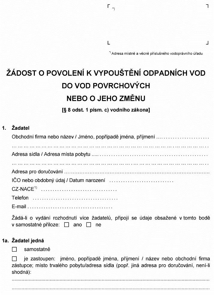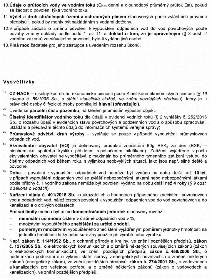 Právní předpisyŽÁDOST O POVOLENÍ K VYPOUŠTĚNÍ ODPADNÍCH VOD DO VOD POVRCHOVÝCH NEBO O JEHO ZMĚNU