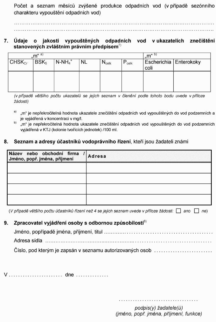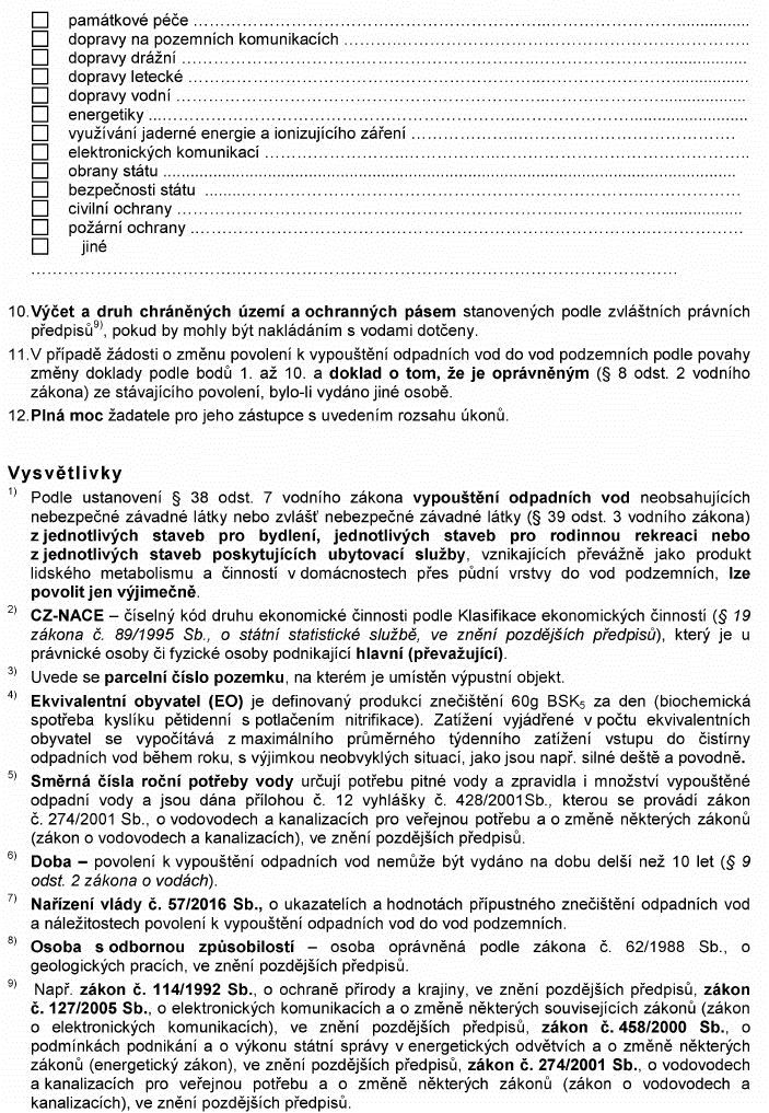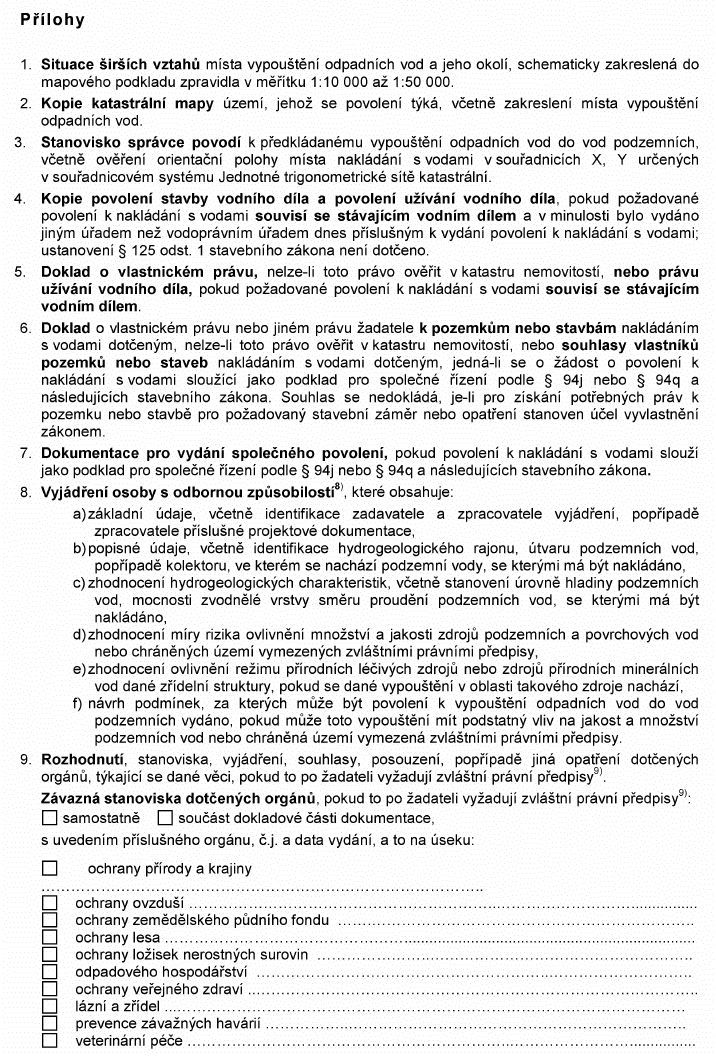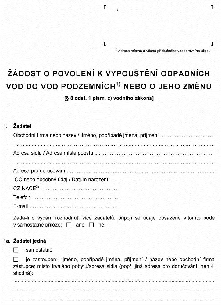 Právní předpisyŽÁDOST O POVOLENÍ K VYPOUŠTĚNÍ ODPADNÍCH VOD DO VOD PODZEMNÍCH1)