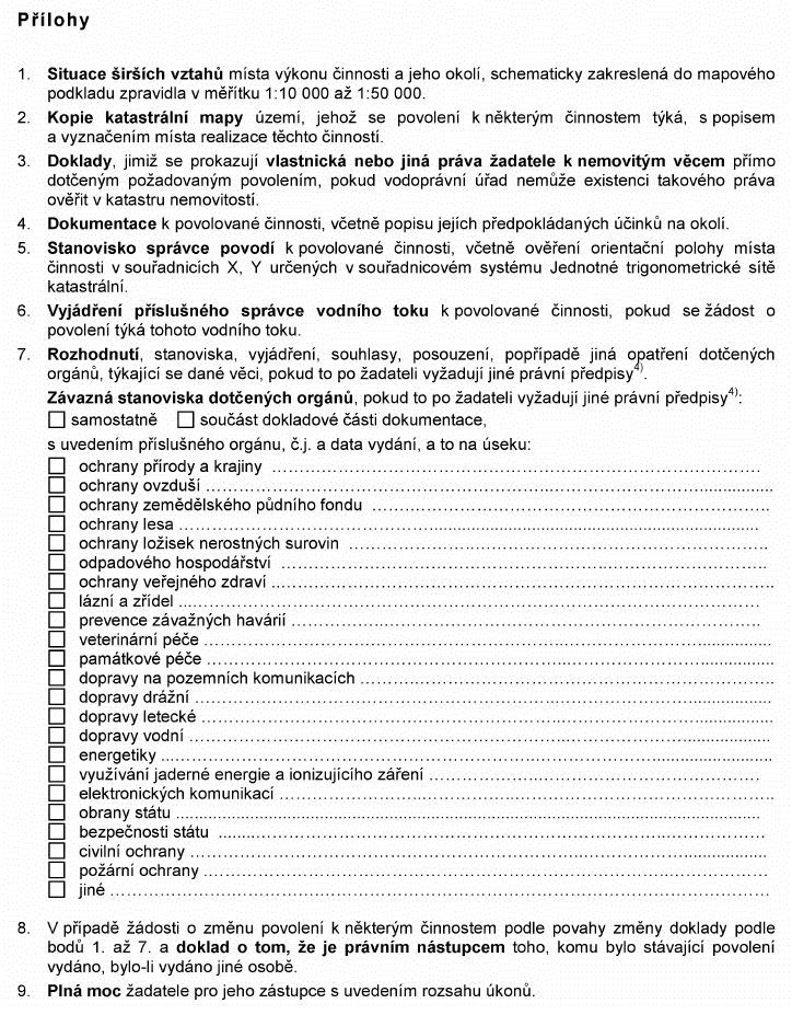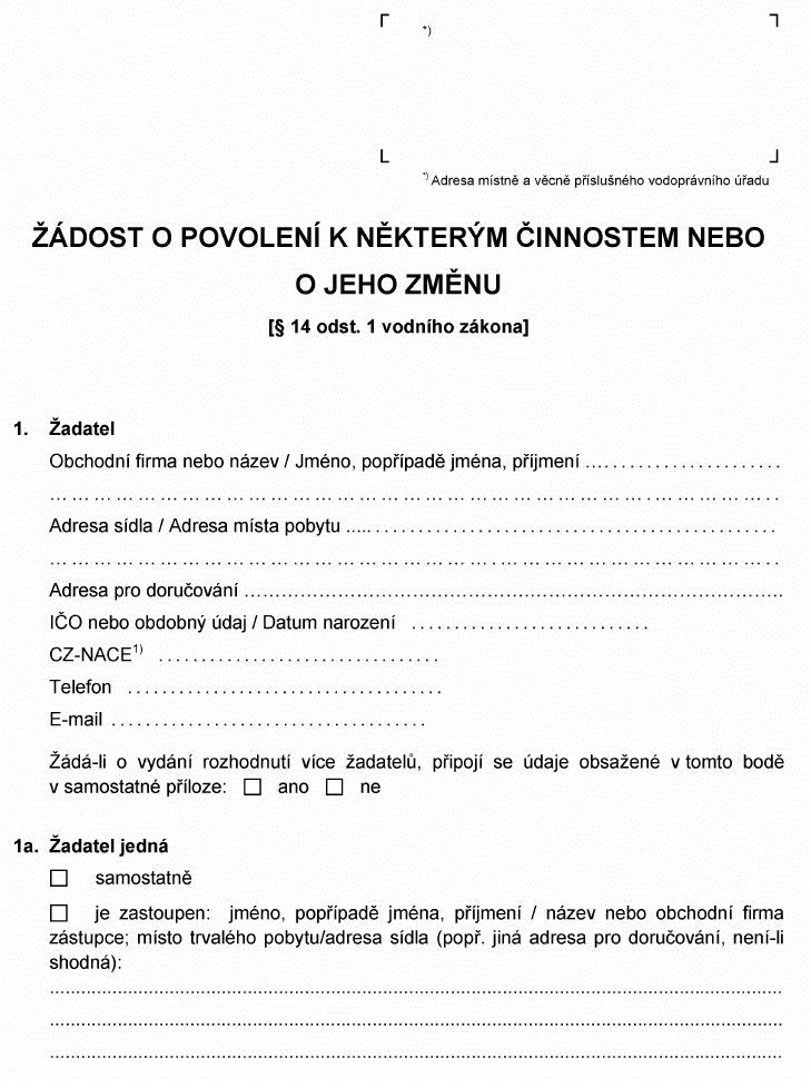 Právní předpisyŽÁDOST O POVOLENÍ K NĚKTERÝM ČINNOSTEM NEBO O JEHO ZMĚNU