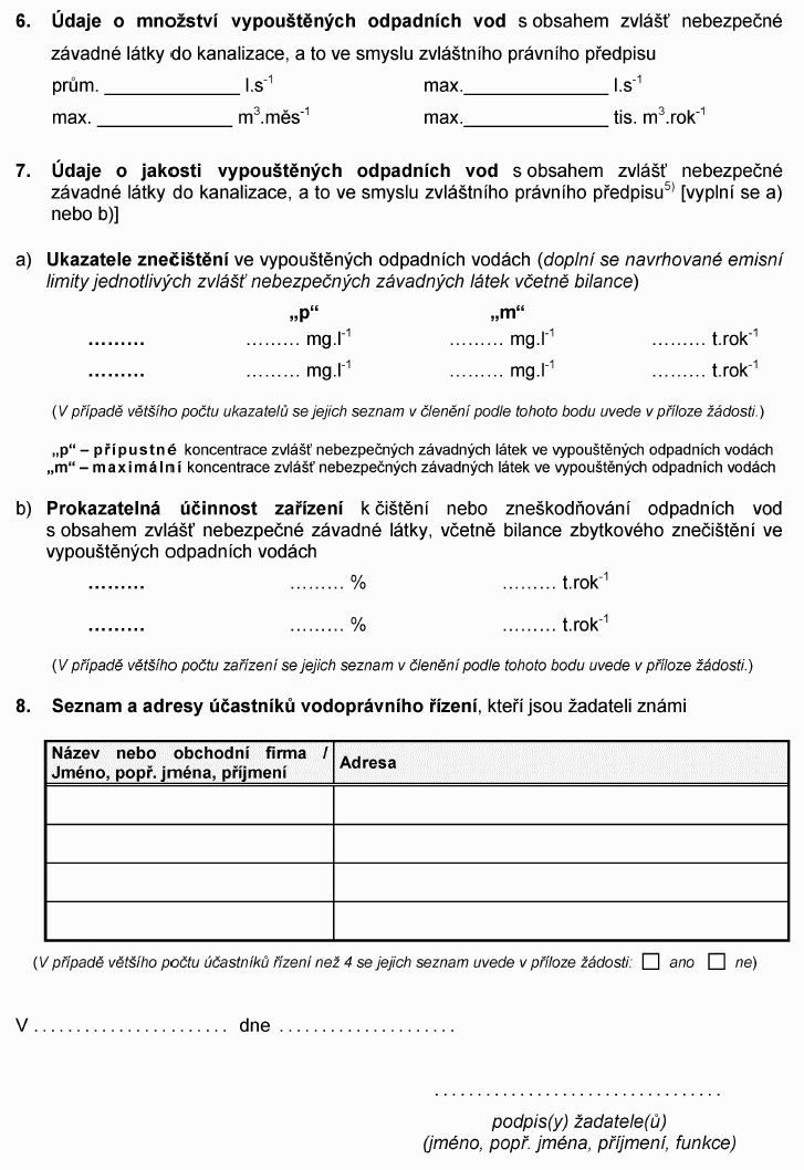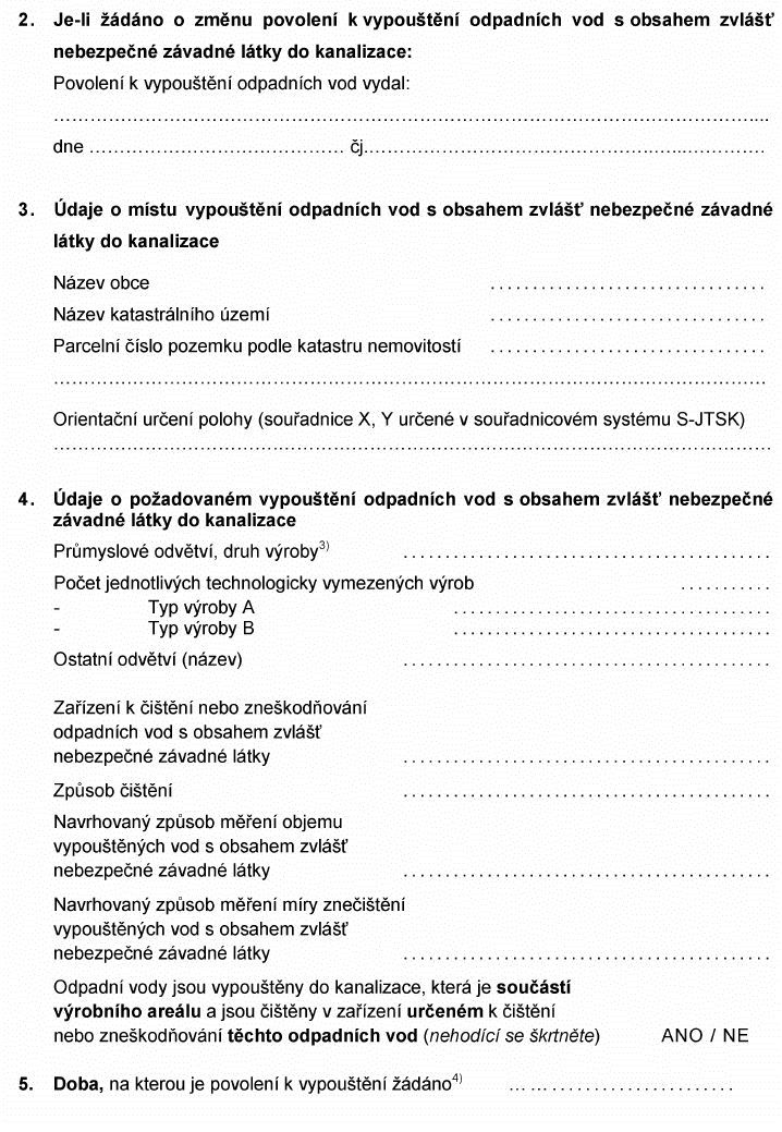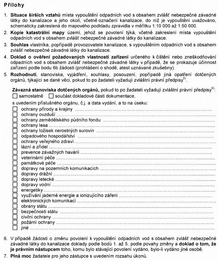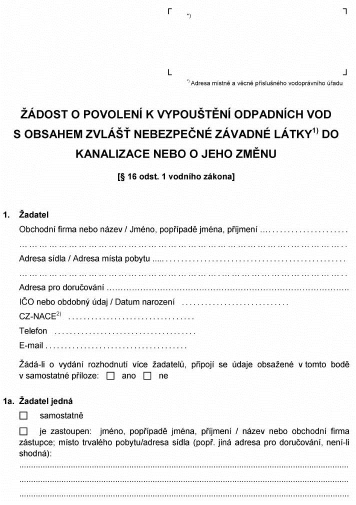 Právní předpisyŽÁDOST O POVOLENÍ K VYPOUŠTĚNÍ ODPADNÍCH VOD S OBSAHEM ZVLÁŠŤ NEBEZPEČNÉ ZÁVADNÉ LÁTKY1)