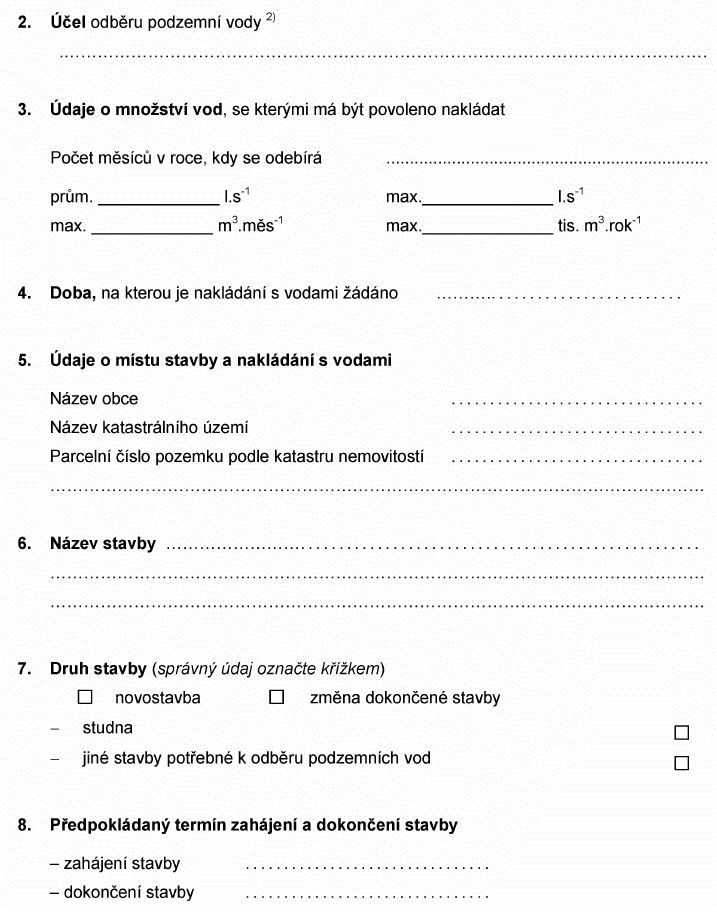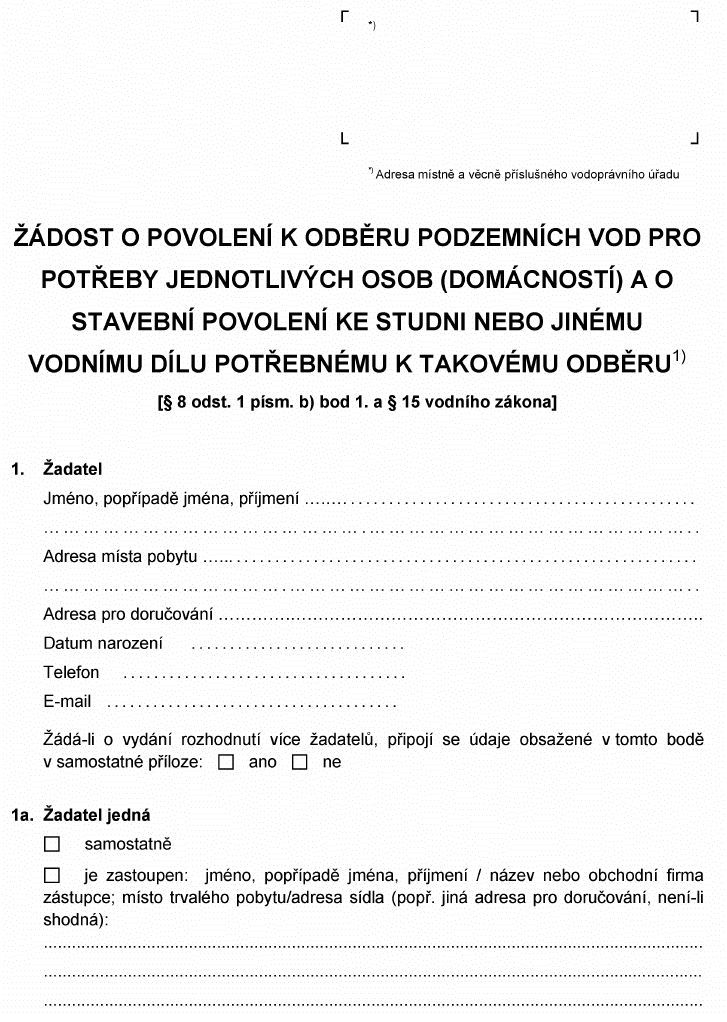 ŽÁDOST O POVOLENÍ K ODBĚRU PODZEMNÍCH VOD PRO POTŘEBY JEDNOTLIVÝCH OSOB (DOMÁCNOSTÍ)