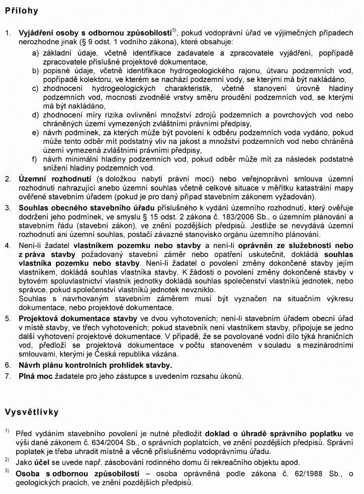 Právní předpisyŽÁDOST O POVOLENÍ K ODBĚRU PODZEMNÍCH VOD PRO POTŘEBY JEDNOTLIVÝCH OSOB (DOMÁCNOSTÍ) A O STAVEBNÍ POVOLENÍ KE STUDNI NEBO JINÉMU