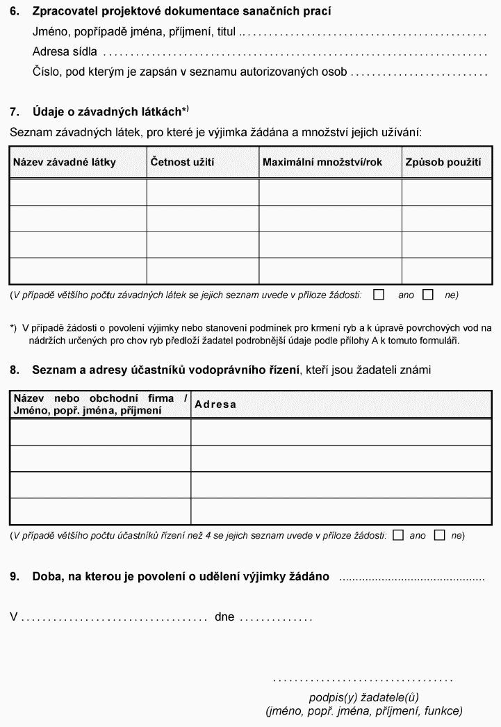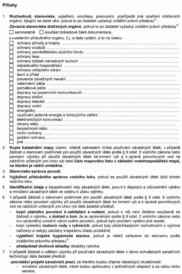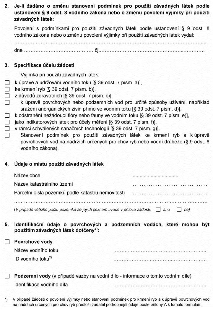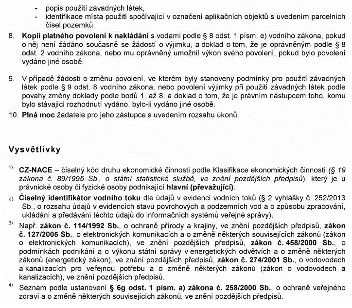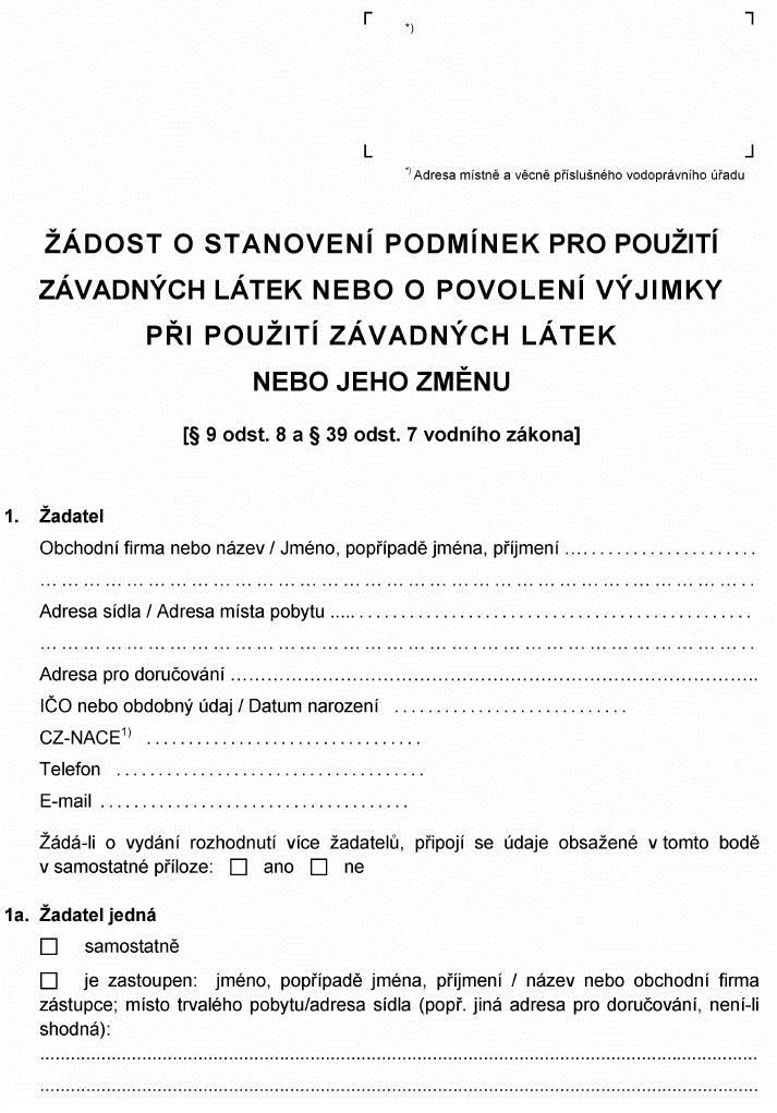 Právní předpisyŽÁDOST O STANOVENÍ PODMÍNEK PRO POUŽITÍ ZÁVADNÝCH LÁTEK NEBO O POVOLENÍ VÝJIMKY PŘI POUŽITÍ ZÁVADNÝCH LÁTEK NEBO JEHO ZMĚNU