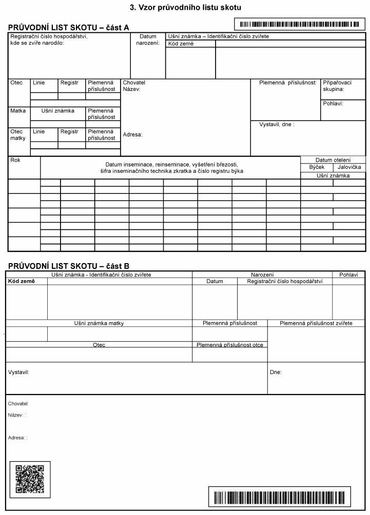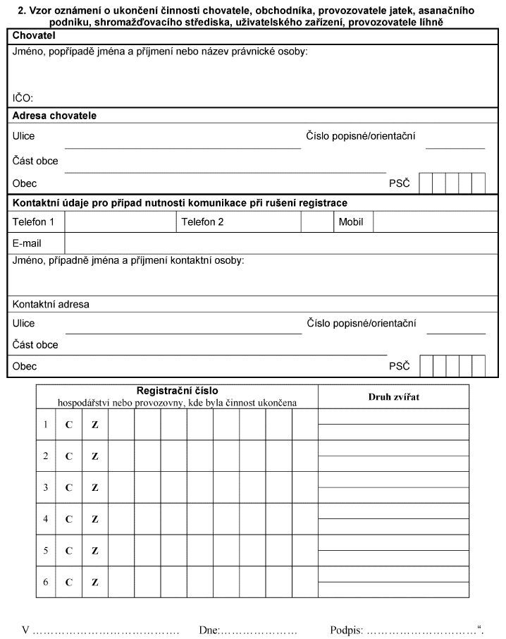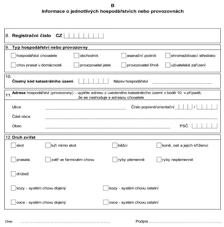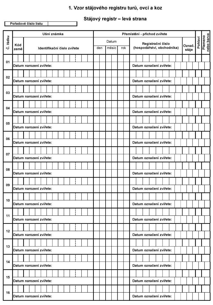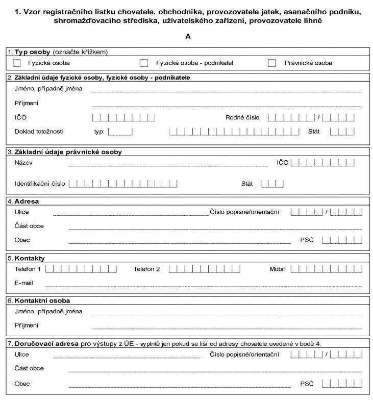 1. Vzor registračního lístku chovatele, obchodníka, provozovatele jatek,