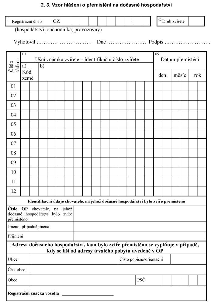 prasat, kterých se přemístění týká, adresa přemístění včetně identifikačních údajů