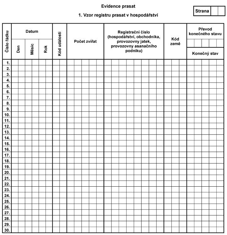 jakákoli evidence, ze které jsou patrné změny počtu chovaných prasat, identifikace