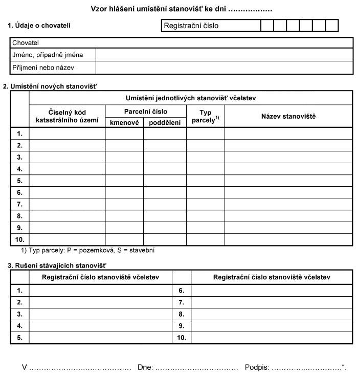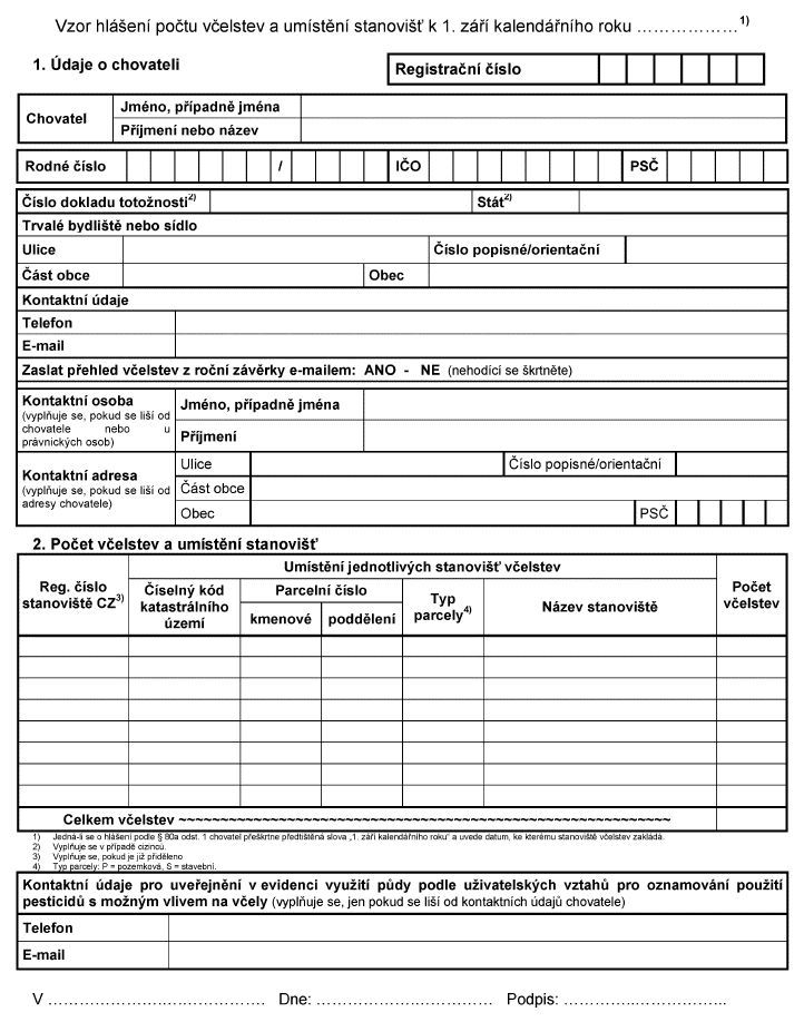 roku údaje o počtu včelstev a umístění stanovišť, a to