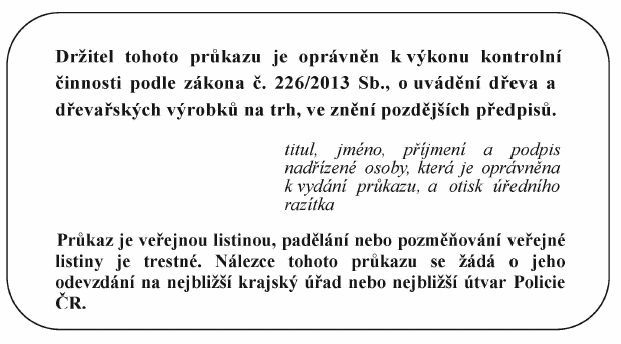 průkazu je oprávněn k výkonu kontrolní činnosti podle zákona č. 226/2013 Sb., o uvádění