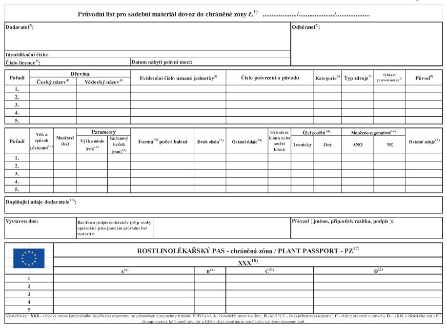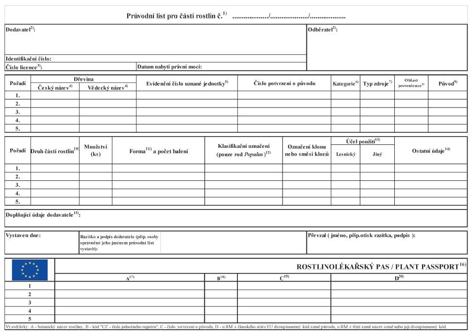 průvodní list rostlinolékařským pasem podle přímo použitelného předpisu Evropské
