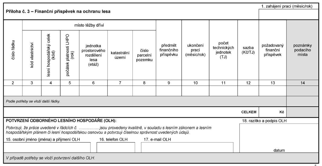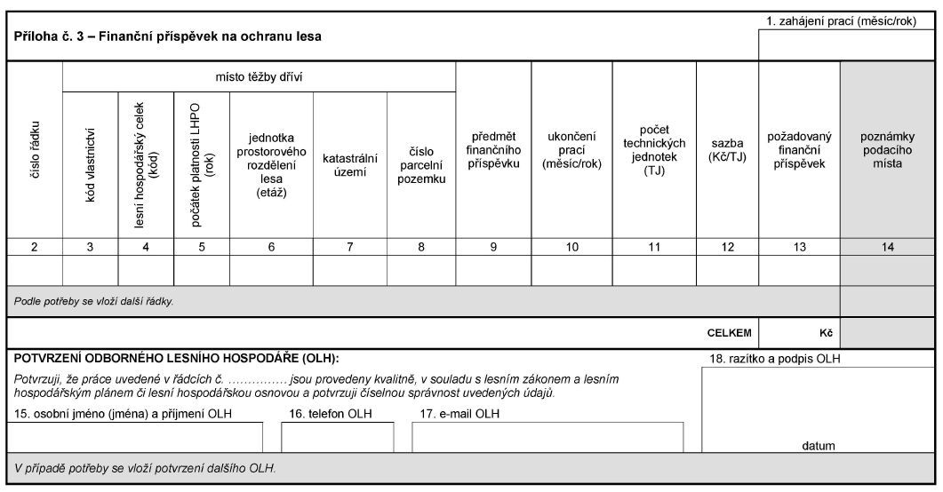 4) Finanční příspěvek na výchovu lesních porostů se zajištěním rozčlenění