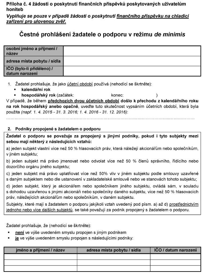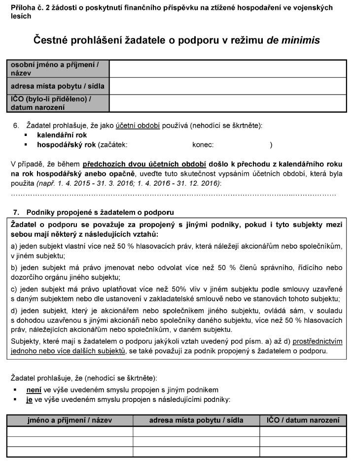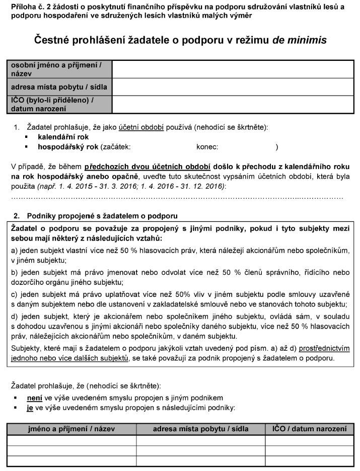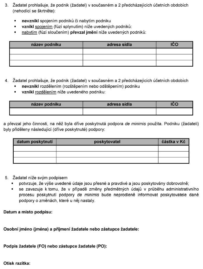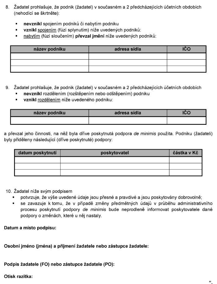 a) čestné prohlášení žadatele o podporu v režimu de minimis,