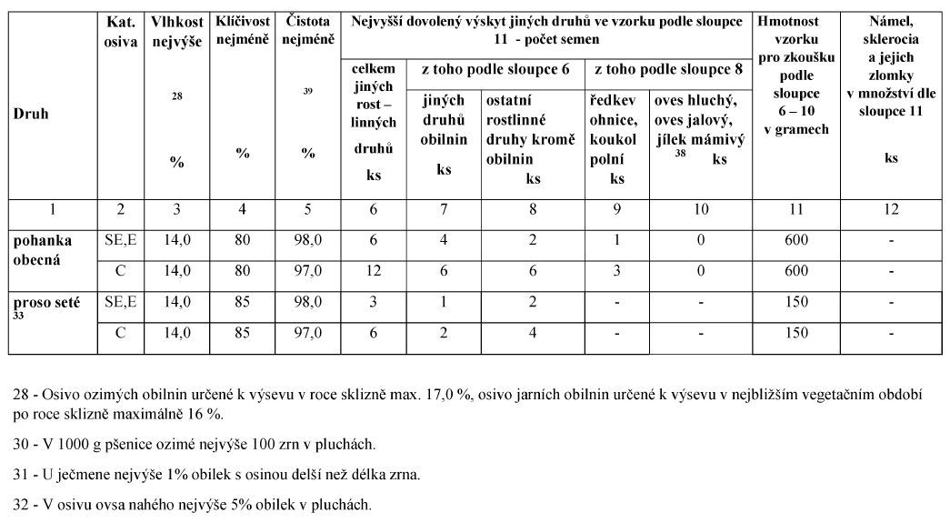 škodlivých organismů, které snižují užitnou hodnotu a kvalitu osiva. Osivo musí rovněž