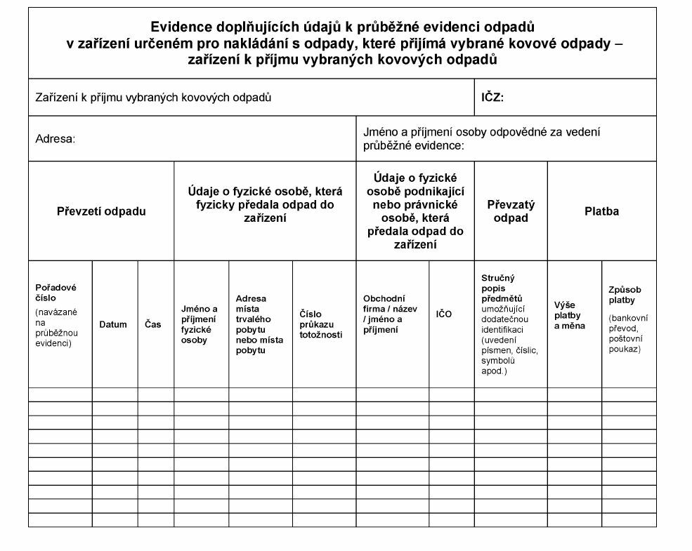 k příjmu vybraných kovových odpadů přidělené krajským úřadem.Pořadové číslo -