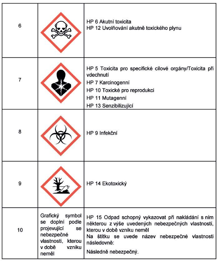 "nebezpečný odpad" a výstražným grafickým symbolem pro nebezpečnou vlastnost.