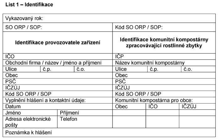 k hlášení pro zpracovatele hlášení.Identifikace komunitní kompostárny zpracovávající rostlinné zbytky