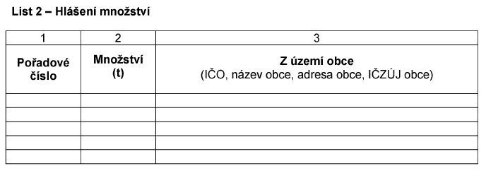 - uvedou se údaje o obci předávající rostlinné zbytky, zejména