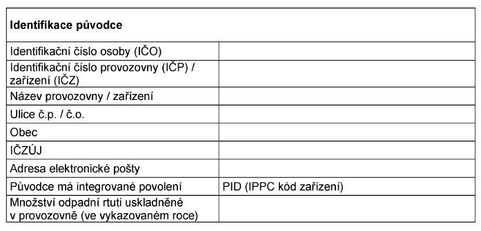 - identifikační číslo zařízení.Celkové množství odpadní rtuti a množství odpadní rtuti