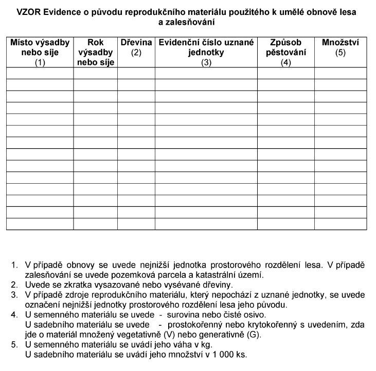 Právní předpisyVZOR Evidence o původu reprodukčního materiálu použitého k umělé obnově lesa a zalesňování