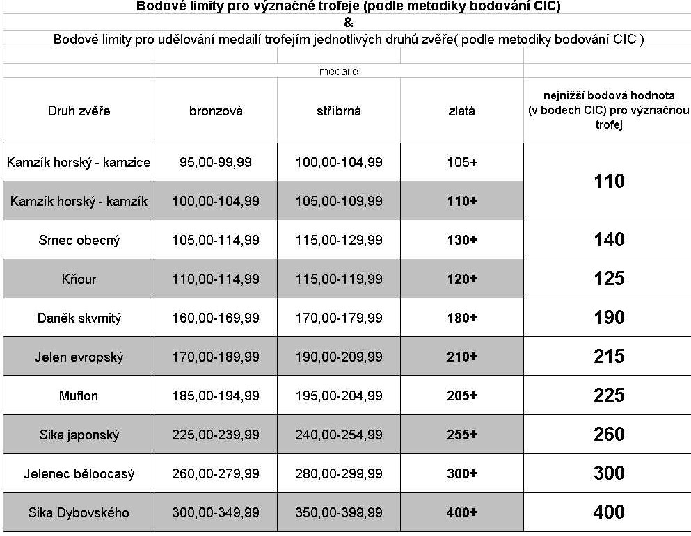Jako význačné trofeje jsou označeny lovecké trofeje, které přesahují medailové bodové hodnoty podle metodiky Mezinárodní myslivecké organizace - CIC:
