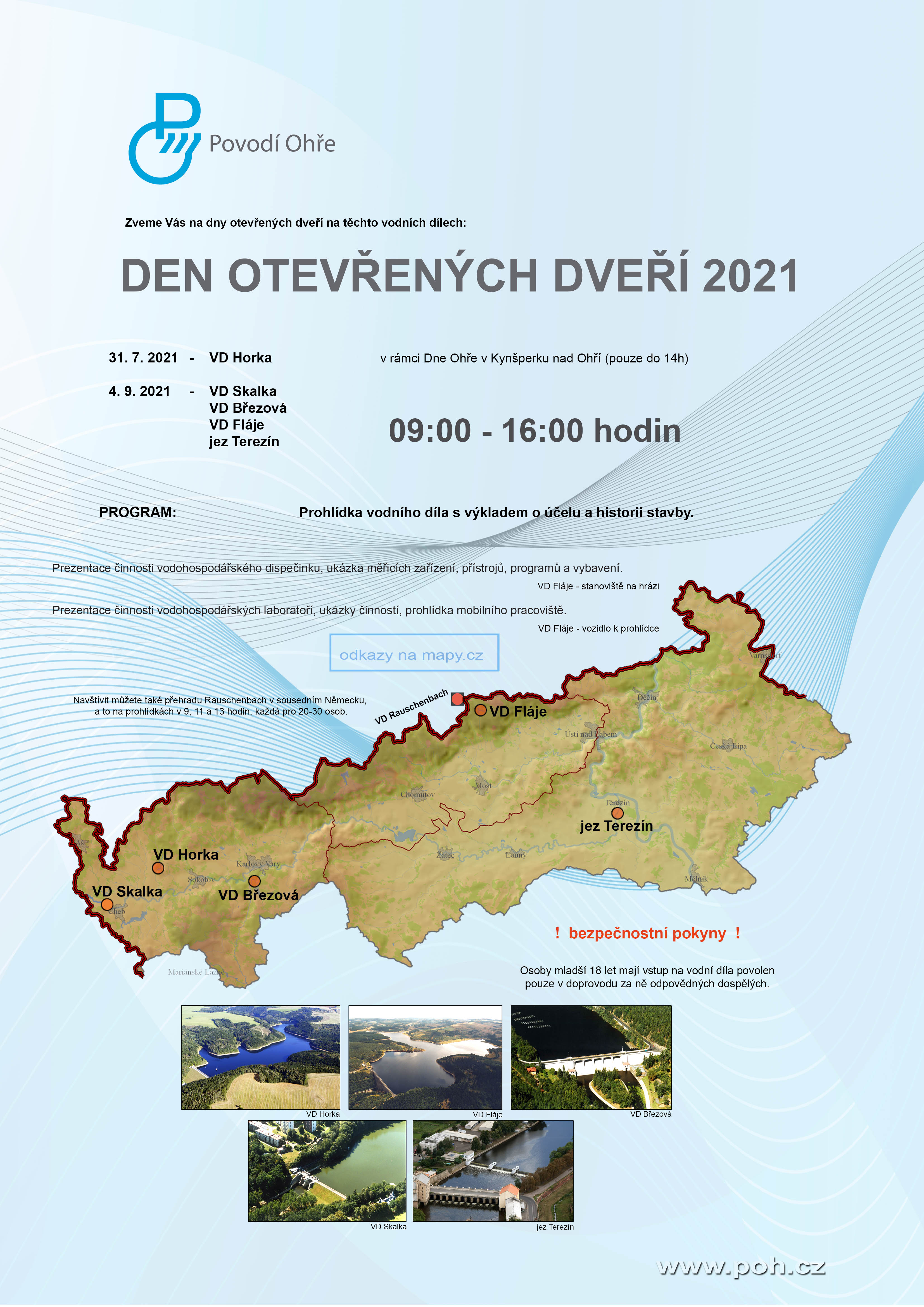 V působnosti státního podniku Povodí Ohře dne 4. 9. 2021 bude letos opět probíhat Den otevřených dveří na těchto vodních dílech: