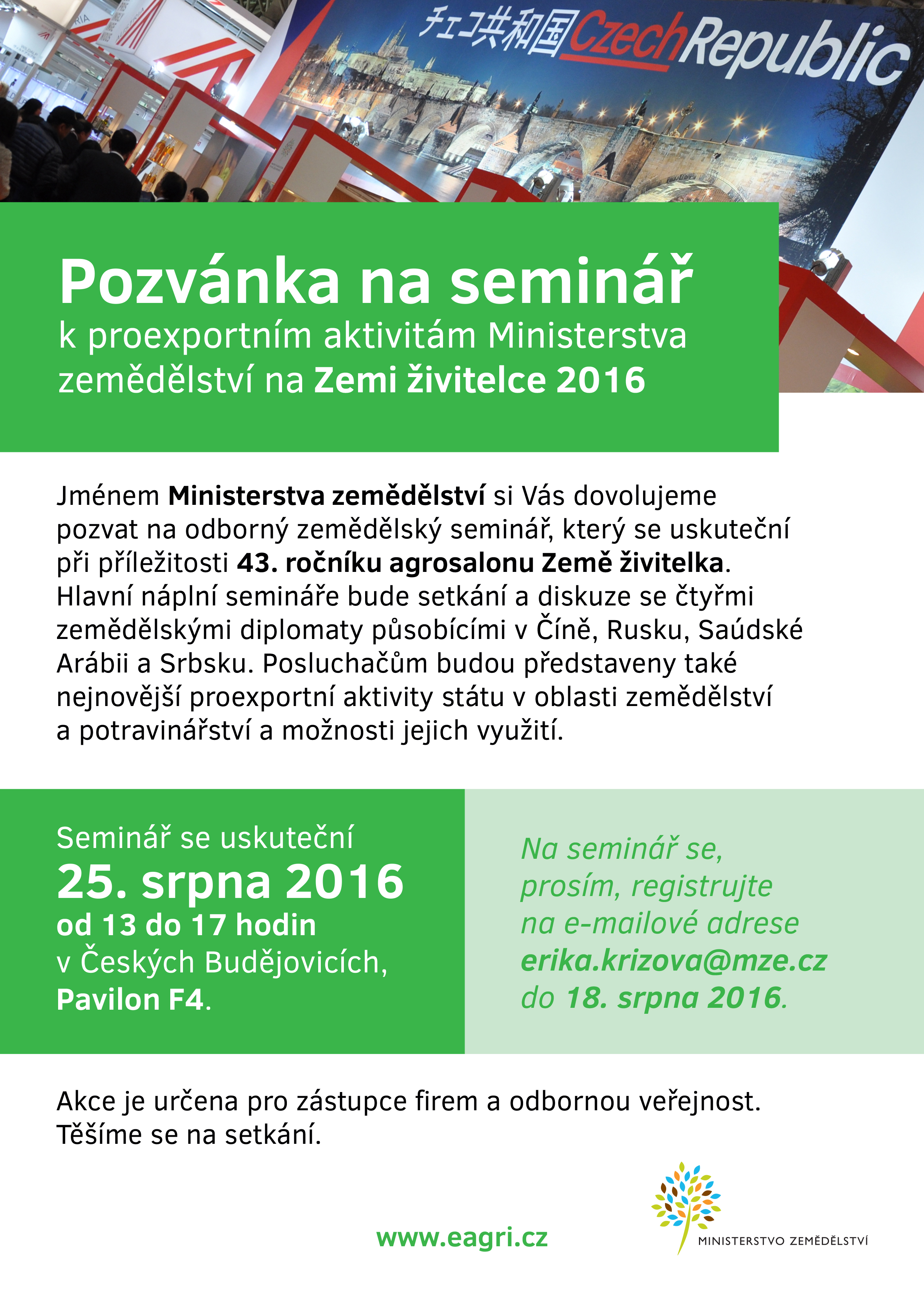Seminář k proexportním aktivitám MZe na Zemi živitelce 2016