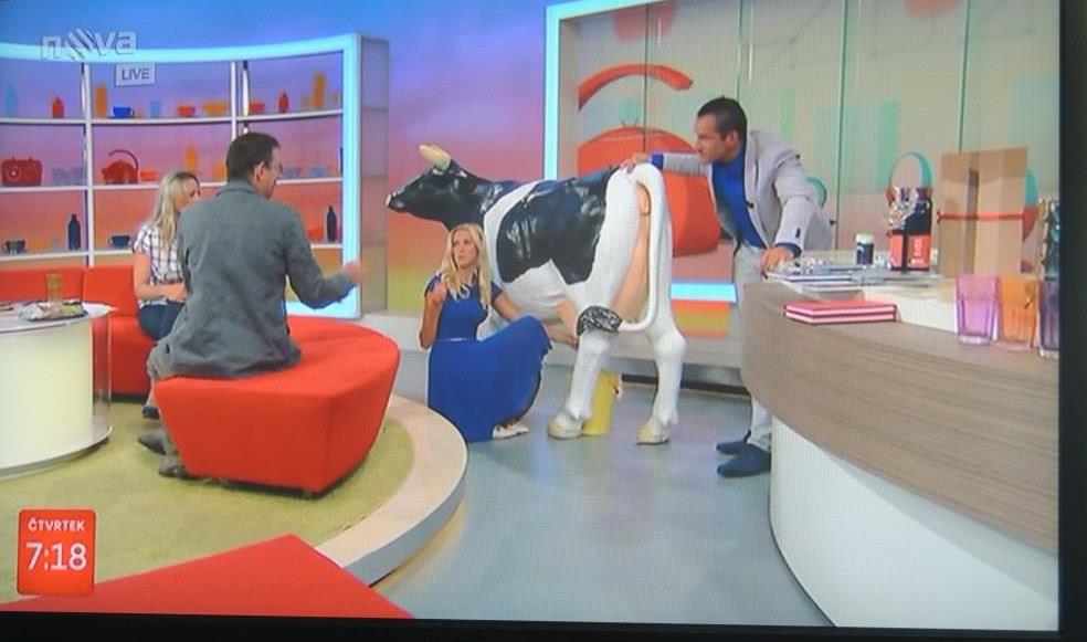 Svou roli hlavní hvězdy ranního vysílání si Matylda užila dokonale. Dokonce se ode dneška může pochlubit, že ji podojila jedna z moderátorek televize Nova.
