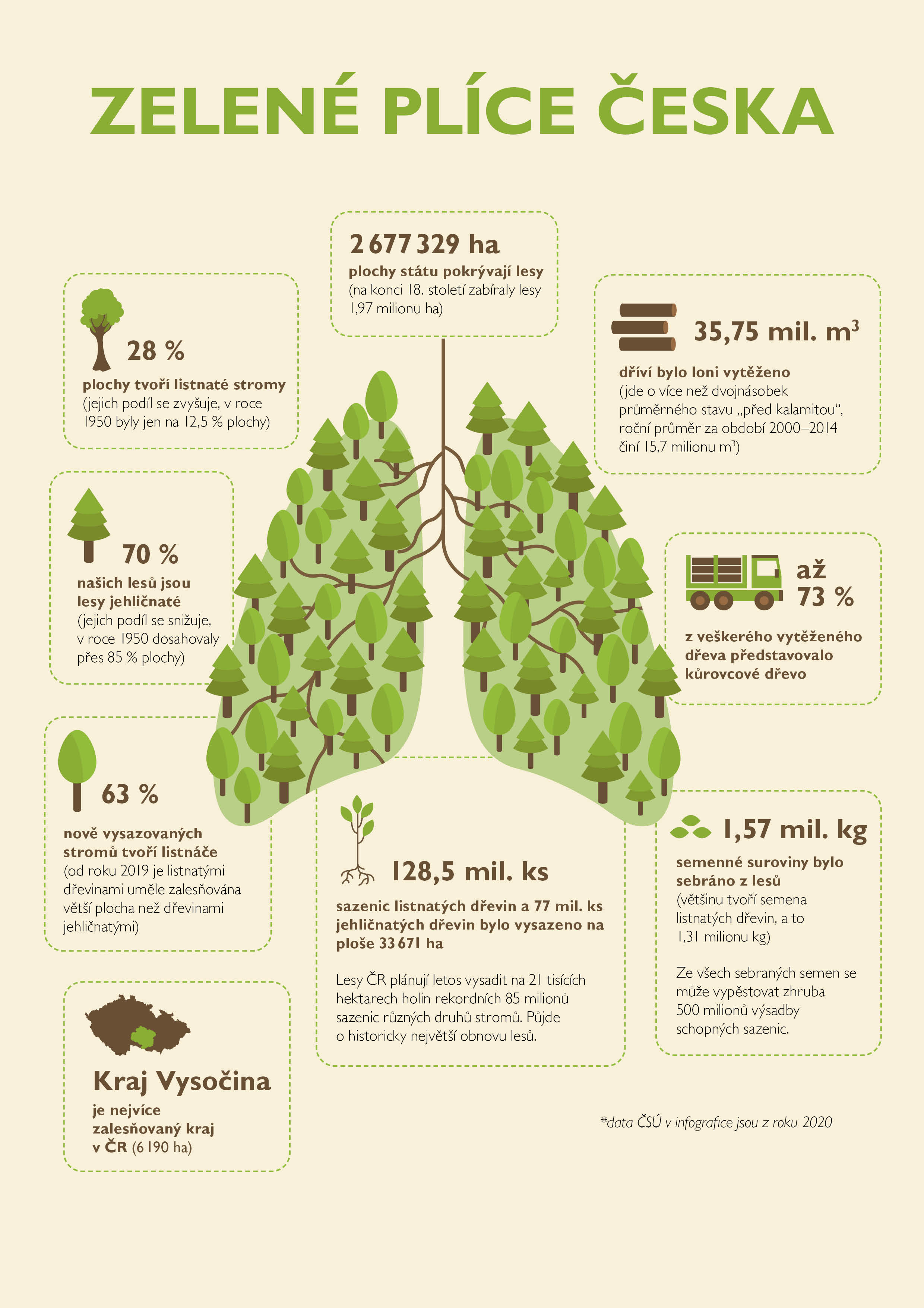 Tisková zpráva — Rok 2020 byl v lesním hospodářství přelomový v několika oblastech, a to rekordní těžbou i obnovou lesa po kalamitě. Lesníci zakládali lesy druhově pestré, odolné ke změně klimatu. Plocha zalesňována listnáči meziročně vzrostla z 14 716 na 17 264 hektarů, druhý rok po sobě jich bylo vysázeno víc než jehličnanů. Ministerstvo zemědělství (MZe) poskytlo loni na obnovu lesů přibližně 9 miliard korun.