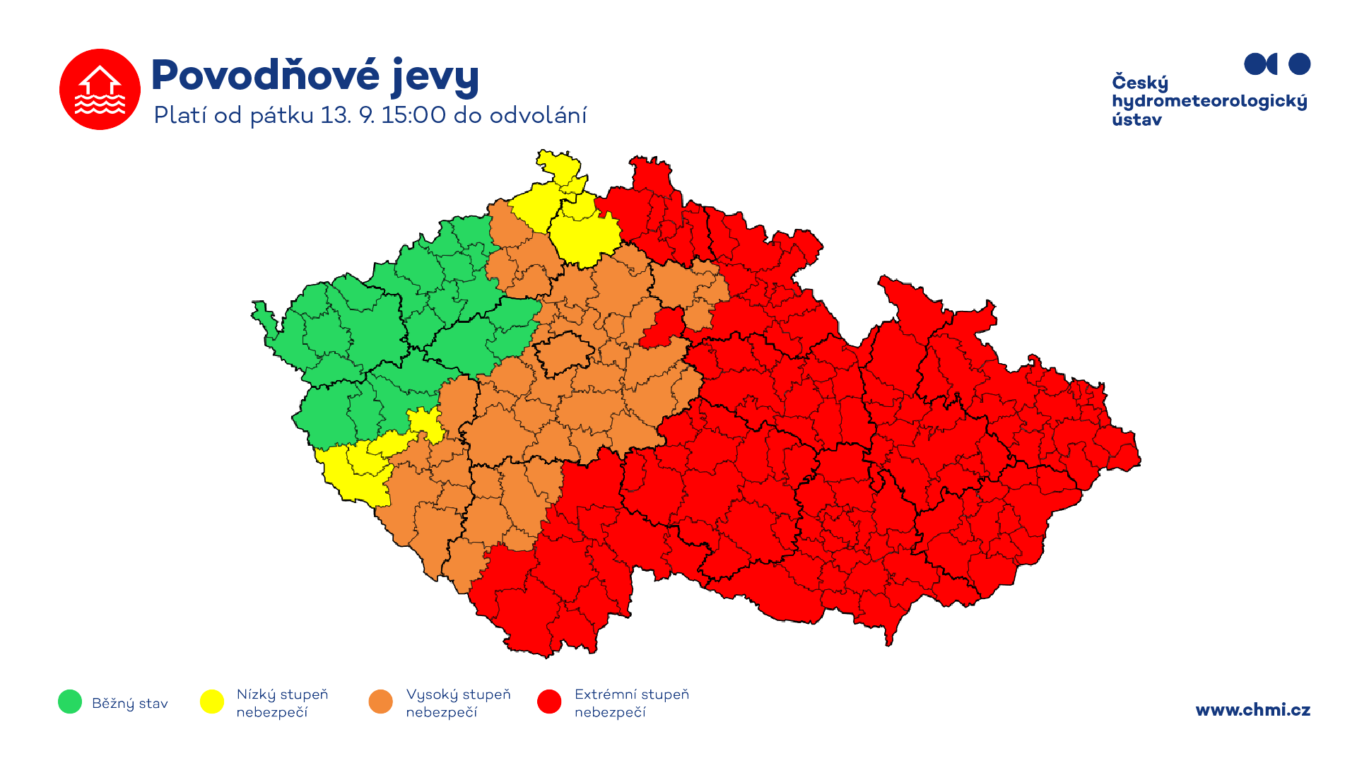 ČHMÚ bude pravidelně aktualizovat predikci a informovat veřejnost o aktuálním stavu. „Výstraha platí pro část území již od dnešní půlnoci, od pátečního odpoledne je výstraha rozšířená na téměř celé území ČR, s výjimkou Karlovarského a části Ústeckého kraje. Pravděpodobně půjde o největší povodňovou situaci od roku 2013, kdy naše území rovněž zasáhly extrémní srážky,” říká ředitel Českého hydrometeorologického ústavu Mark Rieder s tím, že tlaková níže bude postupovat z centrálního Středomoří nad střední Evropu, kde se bude udržovat nejdříve téměř bez pohybu, až během neděle a počátkem příštího týdne se začne zvolna odsouvat k východu. Vydatné srážky budou zesilovat na severním a severozápadním návětří hor z důvodu silného větru, který by měl v ČR foukat od pátku až do neděle.