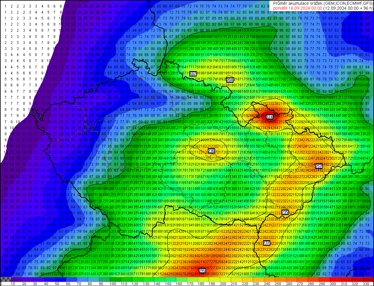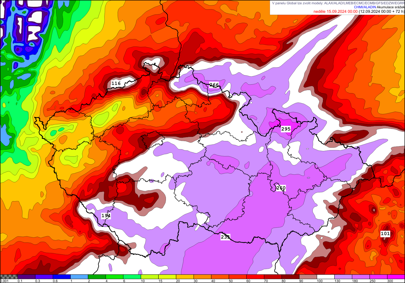 Vydatné srážky budou postupně zesilovat na severním návětří hor z důvodu silného větru, který by měl v ČR foukat od pátku až do neděle. Nejvydatnější srážky modely stále předpokládají v Novohradských horách, na severním návětří Vysočiny, na horách na severu a severovýchodě ČR a také na krajním východě republiky. Největší srážky by měly zasáhnout Jeseníky.