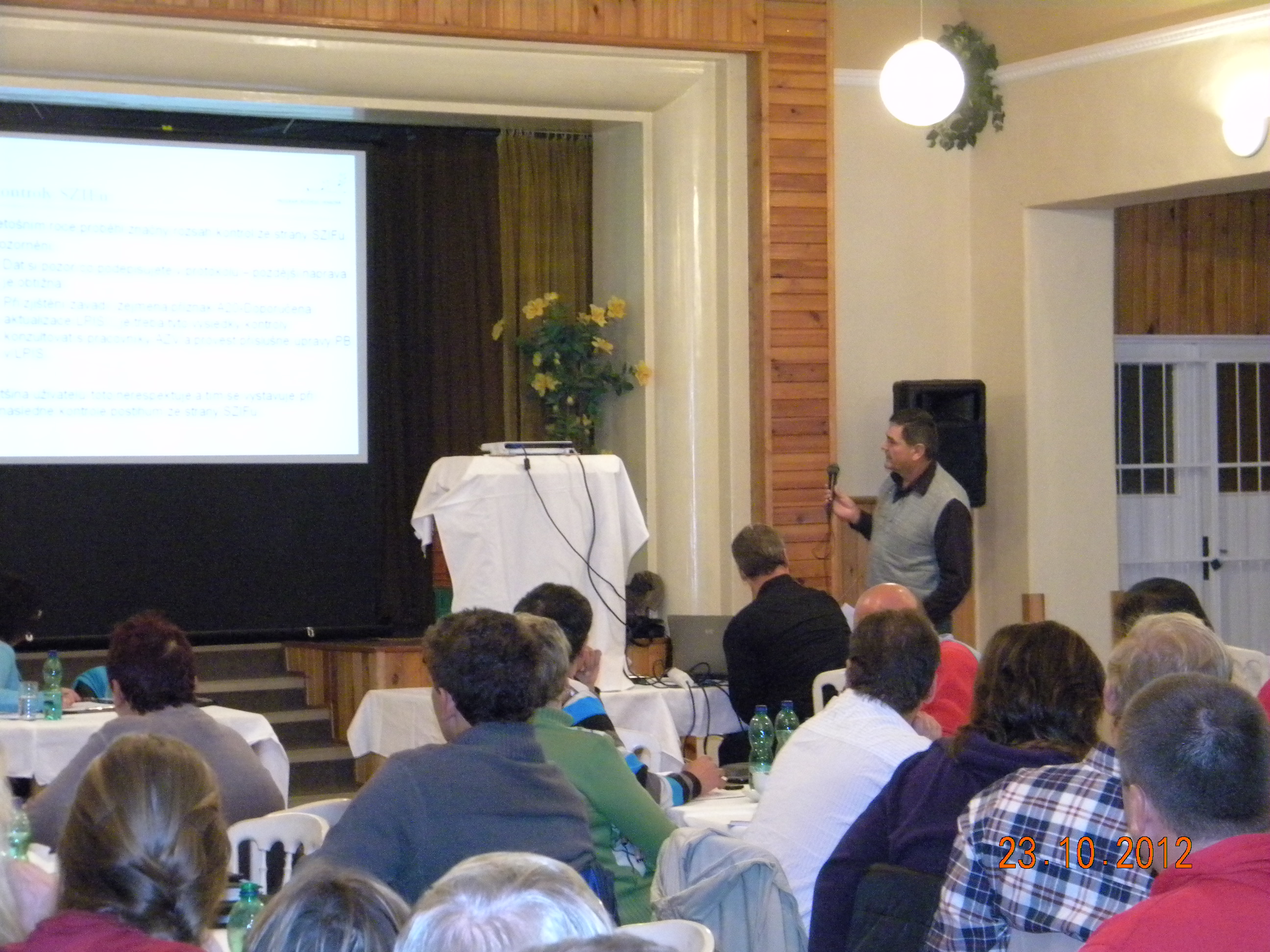 Pí Loucká - informovala o tvorbě předtisků a elektronickém podání žádostí Top-Up 2012. Podrobně popsala proces tvorby předtisků žádosti přes Portál farmáře SZIF s uvedením konkrétních příkladů. Dále popsala s konkrétní prezentací způsoby elektronického podání žádosti Top-Up.