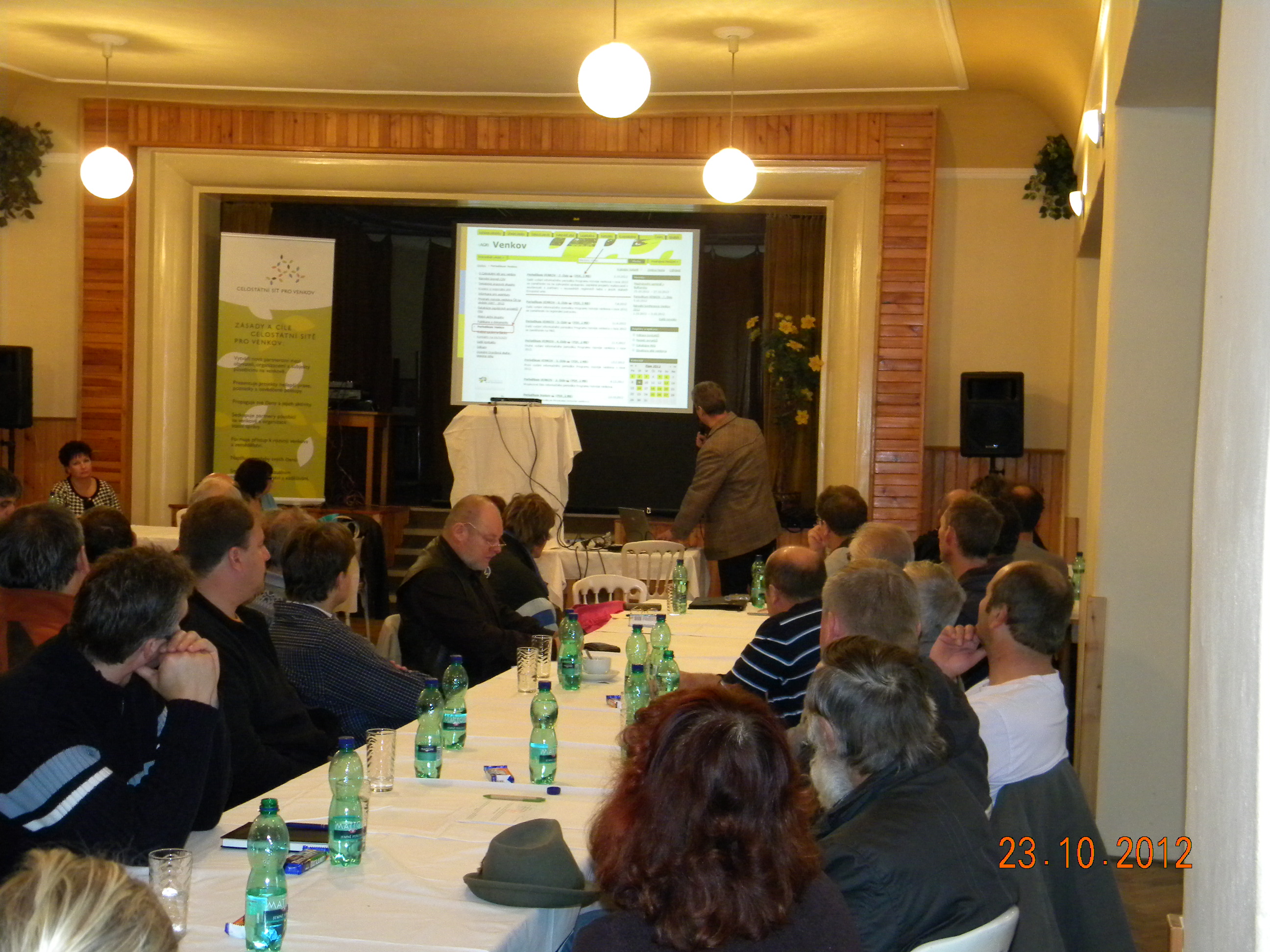 Pracovního setkání partnerů CSV – „Analýza a předání informací, prezentace odborných znalostí a zkušenostní z realizace opatření osy II. Programu rozvoje venkova ČR v roce 2012, změny v roce 2013, uskutečněného dne 23. října 2012 v kulturním domě v Dolním Žandově se zúčastnilo celkem 148 partnerů sítě. Pracovní setkání zahájil Ing. Vratislav Vaigelt – ředitel KAZV Karlovarský kraj. Přítomné seznámil s věcným zaměřením pořádaných setkání partnerů CSV, s plánem a finančním rozpočtem na r. 2012, s databází úspěšných projektů PRV, s časopisem Venkov - informační periodikum PRV a s příjmem žádostí o dotace pro projektová opatření Programu rozvoje venkova – 17. kolo a předběžným harmonogramem příjmu žádostí o dotaci pro projektová opatření PRV ČR na rok 2013. Dále přednášel na téma hodnocení rizik ekologické újmy pro zemědělský sektor a na téma – Povinné požadavky na hospodaření (SMR), oblast dobrých životních podmínek zvířat v rámci kontrol Cross Compliance od 1.1.2013.
