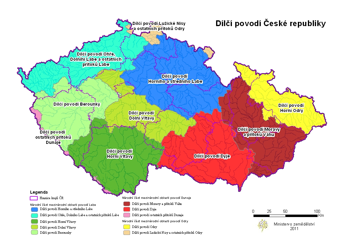 Plány dílčích povodí jsou zpracovávány pro 10 dílčích povodí: